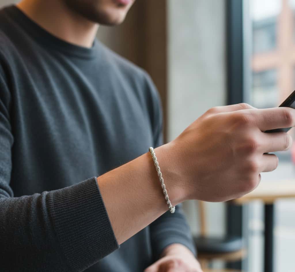 The Helix Rope Chain Bracelet embodies strength woven into style. Crafted from high-grade stainless steel, its twisted rope design adds texture, durability, and timeless appeal. Polished to a mirror shine, it’s built to resist wear and elevate any look. A bold essential for those who value simplicity with power.