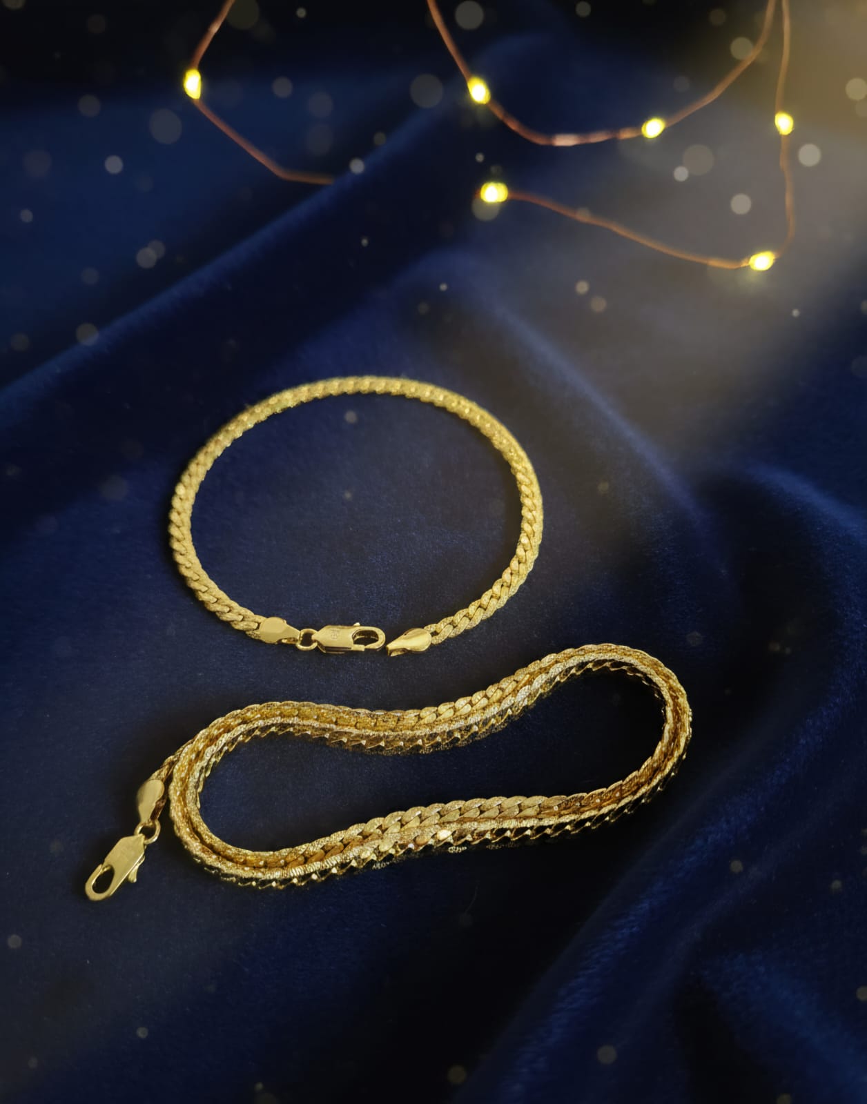 This set features a captivating textured chain necklace and a matching bracelet.